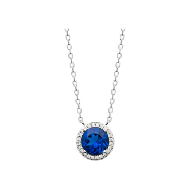 Collier en argent rhodié, oxydes de zirconium et pierre synthétique, 45cm